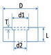 D: Max 63mm; L: Max 30mm; d1≥d2: Max 30mm; T: Max 1.5mm